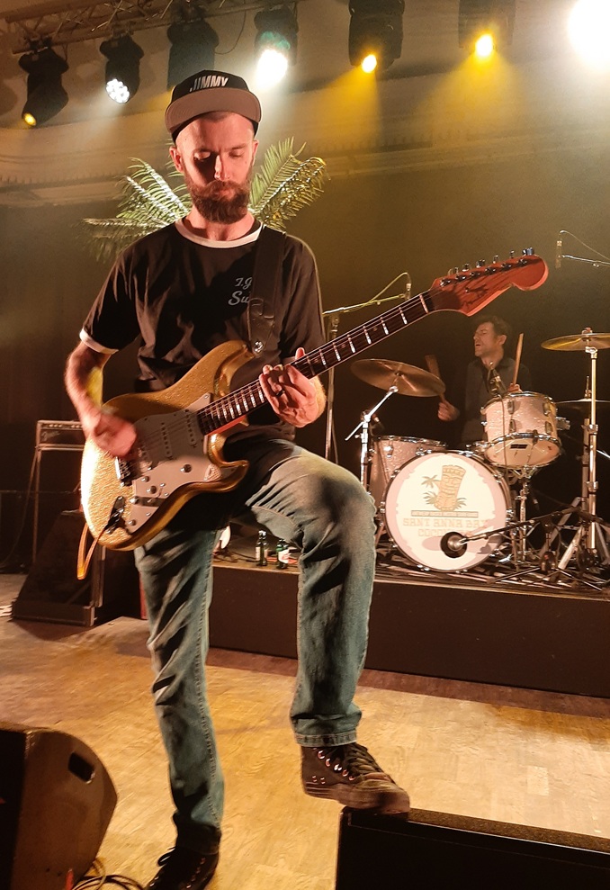 De in panterprint gehulde gastheren en -dame (de drums zijn voor rekening van Joyce Hufkens, echtgenote van leadgitarist Danny Van Langendonck) van Sant Anna Bay Coconuts brachten een visuele set met danspasjes, elementen uit ska en eigen nummers als Caught In The Curves, The Haunted Lighthouse of St Augustine, Fiber Shaping, Devil's Gun, Whiskers Aflame, Cumbia Colada, Egg Burrito, Habanero Y Piña, Pacifica, Liquid Walls, een cover van Margaya, het onvermijdelijke maar lang uitgesponnen en improviserend Misirlou, en één nieuw nummer, het aan de organisatie en het publiek opgedragen Creeps In The Casino. Ik bewonder Sant Anna Bay Coconuts omwille van hun eindeloze energie zowel on stage als privé, en omdat ik nooit een groep ben tegengekomen bij wie het familiegevoel zo sterk was. Dit was overigens het eerste optreden van bassist Jim De Bruyne sinds zijn pensionering na een leven lang beroepsmilitair. Tijd voor een nieuwe carrière als beroepsmuzikant, Jim!