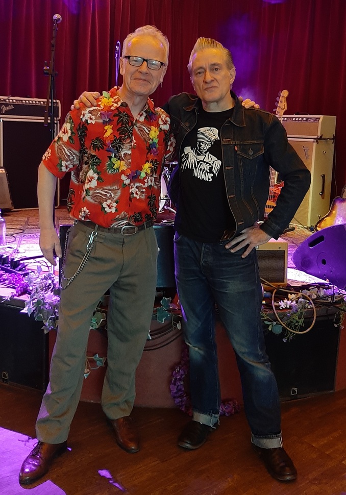 Opener was de nieuwste ted held, Yann O'Fender uit Frankrijk. O'Fender, echte naam Yann "Moremelons" Gourmelon, ook bekend van Corrup-Ted en de Crazy Cavan tribute Mr Cool & the Crazy Rhythm Band. O'Fender heeft het van geen vreemden want hij is de zoon van Alain "Texas" en Sylvie "Tweeny" Gourmelon, respectievelijk zanger-gitarist en saxofoniste van The Long Black Jackets (F, in hun recentste incarnatie met Yann O'Fender op basgitaar). Lijkt me geweldig om met je kind muziek te kunnen maken, maar die van mij willen alleen maar voetballen... Daarvòòr zaten pa en ma in The Confederate Teds (F), en vanavond was het pa op basgitaar, met nog een all round ted, multi-instrumentalist Jacky Lee Vinour, op drums. Eigenlijk waren dit dus The Long Black Jackets zonder saxofoon in de bezetting van hun bij mijn weten laatste album, en O'Fender speelde ook al bij Confederate Teds reünies. Eén pot ted nat, maar ik geef toe dat ik vooral O'Fender's eerste album, Ted Cool uit 2019, bruist van energie. De set was een staaltje rock 'n' roll efficiëntie met naast zijn eigen klassiekers in wording Ted Cool, Boptown Rock en Chukkaboot Stomp uiteraard obligaat Crazy Cavan werk als She's The One To Blame maar ook rockabilly covers als Hang Loose van Tommy Spurlin, al zat het feit dat dat nummer ook gedaan werd door revival favorieten Whirlwind er ook wel iets mee te maken hebben. Nog zo'n ted classic: Road Of Steel van The Riot Rockers. In elk geval: een veelbelovend begin van het festival, want O'Fender bewees niet alleen een toffe ted te zijn maar vooral een toffe ket die veel meer is dan enkel een ted.